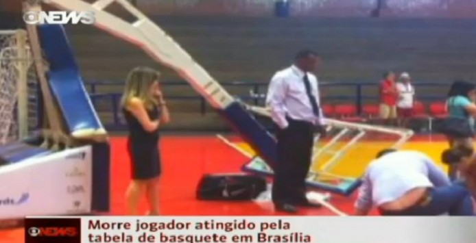 Ο νεαρός μπασκετμπολίστας δοκίμασε να καρφώσει αλλά η μπασκέτα έσπασε από την βάση της, με αποτέλεσμα αυτός να «σκάει» κάτω με το κεφάλι και στη συνέχεια να τον πλακώνει το ταμπλό με τα σίδερα…