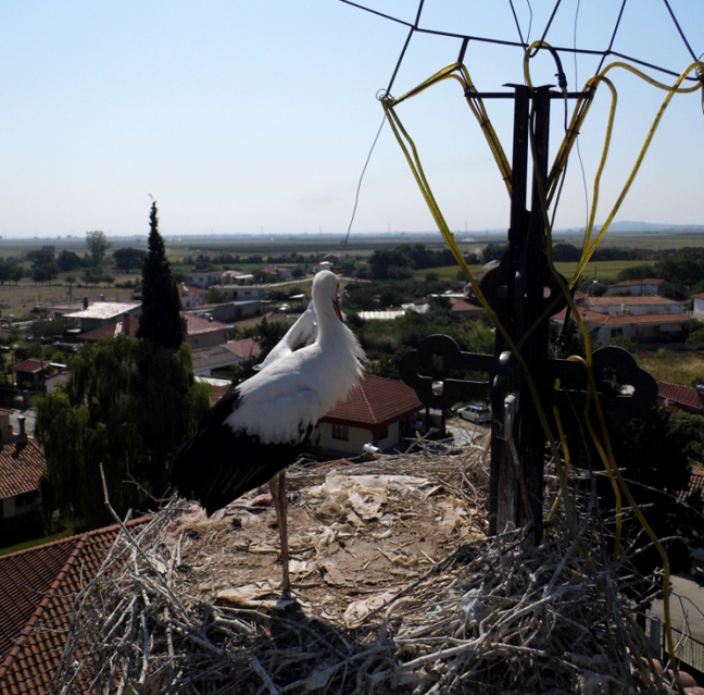Ο λόγος για ένα νεαρό λευκό πελαργό (Ciconia ciconia) που έμπλεξε τη φτερούγα του σε σύρμα αντιστήριξης, το οποίο είχε τοποθετηθεί πάνω στον σταυρό του καμπαναριού εκκλησίας στη Γενισσέα Ξάνθης.