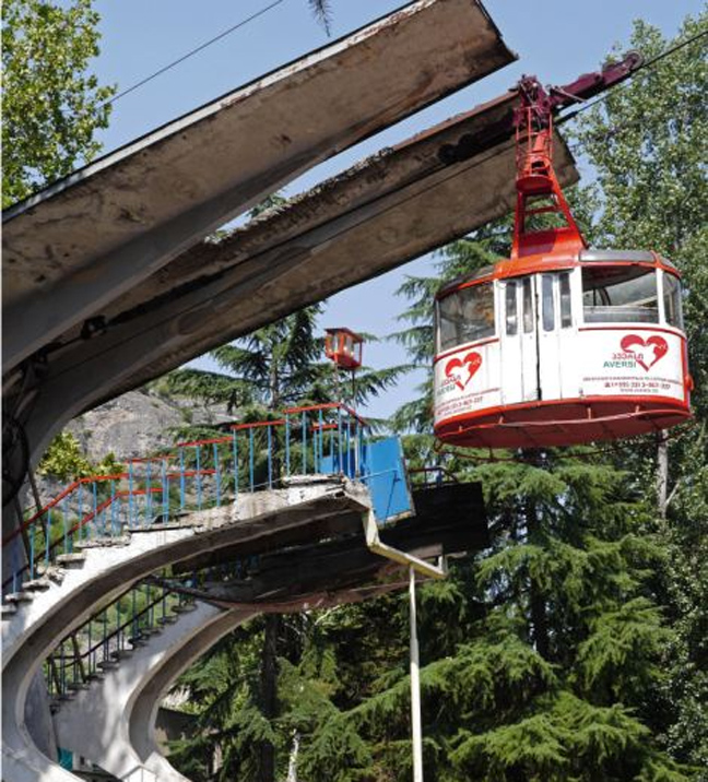 τη δουλειά δεν ήταν εύκολη υπόθεση. Η επιστροφή έπειτα από τη 18ωρη βάρδια, απαιτούσε να μπουν σε αυτά τα «μεταλλικά φέρετρα» που αιωρούνταν πάνω από τις απότομες πλαγιές και τις χαράδρες στην πόλη Chiatura.