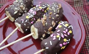3. Λιώνουμε την κουβερτούρα σε μπεν μαρί και βουτάμε την μπανάνα από το κάτω της μέρος μέχρι τη μέση.