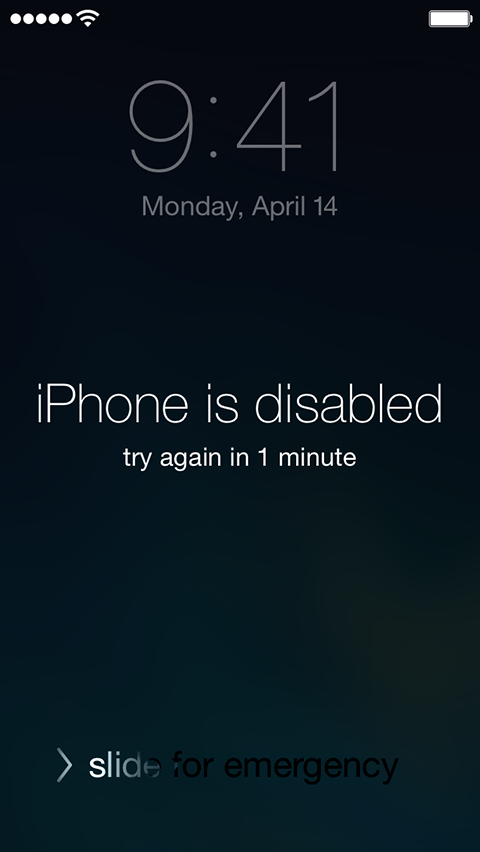Αν καταχωρίσετε εσφαλμένο συνθηματικό έξι φορές στη σειρά, η συσκευή σας θα κλειδωθεί και θα δείτε το εξής μήνυμα: