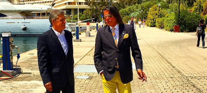 Πρώτα ήρθε αυτή με τον πρόεδρο της ΕΝΠΕ Κώστα Αγοραστό και ακολούθησε μια ακόμη με τον Γρηγόρη Ψαριανό και τον δήμαρχο Θεσσαλονίκης Γιάννη Μπουτάρη σε σκάφος παρέα με τους φακέλους, τις σημειώσεις τους και λίγο ουζάκι. «Ο Ψαριανός και εγώ κρεμόμαστε εν πλω από τα χείλη του Μπουτάρη», έγραψε στη λεζάντα.