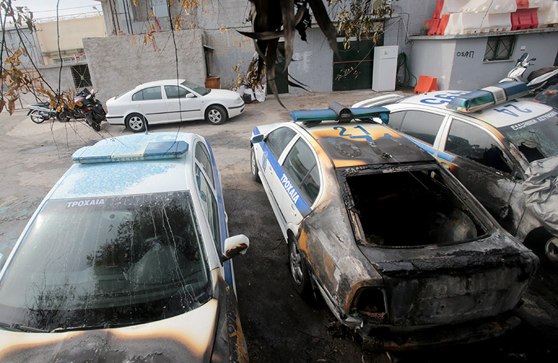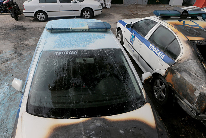 Άγνωστοι πυρπόλησαν περιπολικά και τραυμάτισαν δύο αστυνομικούς