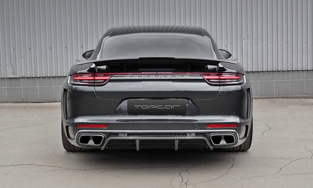 Η TopCar προτείνει ένα οριακά διακριτικό body kit για την Panamera, με εκτενή χρήση ανθρακονήματος, νέας σχεδίασης προφυλακτήρες εμπρός και πίσω, αεραγωγούς και πλευρικά μαρσπιέ, το μεγάλο και sport μοντέλο της Porsche γίνεται ακόμα πιο ιδιαίτερο. Ανασχεδιασμένα είναι και τα εμπρός φώτα, όπως και η πίσω –σταθερή- αεροτομή, στοιχεία που κάνουν την εμφάνιση της Panamera αρκετά πιο επιθετική.