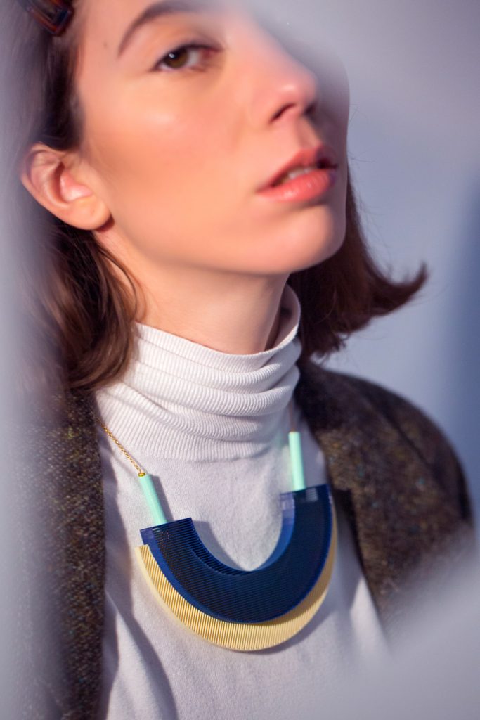 «Στόχος μου είναι η συλλογή, παρά την αυστηρή γεωμετρία και τις αρχιτεκτονικές αναφορές, να αποπνέει αισθητική και κομψότητα, χωρίς να είναι σοβαροφανής», εξηγεί. «Θα ήταν ενδιαφέρον να αλλάξει την προκαθορισμένη αντίληψη που υπάρχει για το πλαστικό (συννηφασμένο με τη μαζική παραγωγή και το στίγμα της ρύπανσης), αλλά και το τετριμμένο πλαστικό κόσμημα, επανασυστήνοντάς το σε μια νέα, πιο εκλεπτυσμένη μορφή και προσαρμοσμένο στην οικονομική πραγματικότητα του σήμερα».