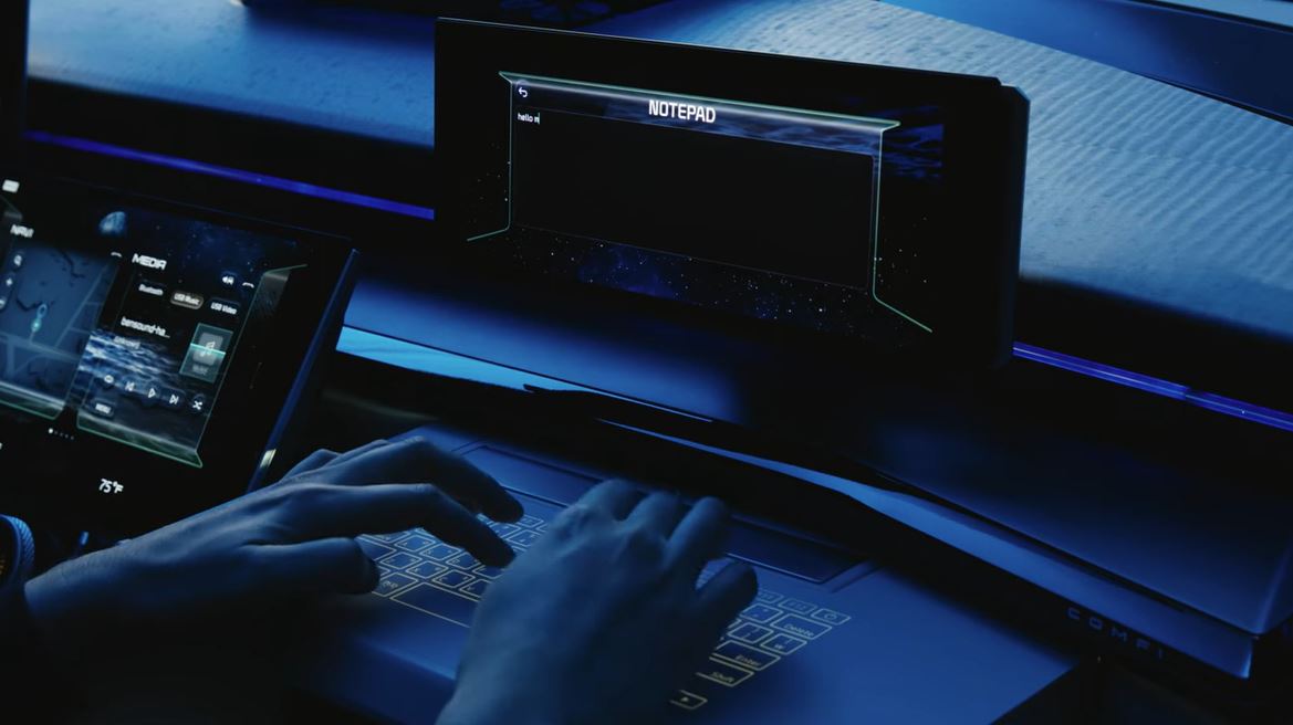 Yπάρχει για παράδειγμα η δυνατότητα μετακίνησης της κεντρικής οθόνης προς την πλευρά του συνοδηγού, ο οποίος μέσα από ένα αναδιπλούμενο τραπεζάκι με πληκτρολόγιο, μπορεί να την μετατρέψει σε ένα laptop για εργασία.