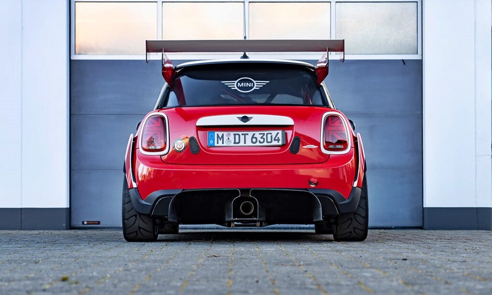 Ειδικά στο πίσω μέρος με τη μεγάλη αεροτομή που εκτείνεται αρκετά και τον τεράστιο διαχύτη που «αγκαλιάζει» την απόληξη της εξάτμισης, η εικόνα του Mini είναι τελείως «μαχητική».
