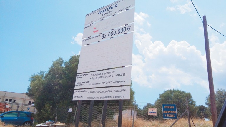 Ετσι, το εργοτάξιο παραμένει κλειστό, με την ταμπέλα να διαφημίζει ακόμη το φιλόδοξο πλάνο, ενώ το σχεδόν ολοκληρωμένο κτιριακό συγκρότημα ρημάζει αναμένοντας τον νέο ιδιοκτήτη του, είτε κάποιον επενδυτή, είτε και το ίδιο το κράτος, εάν κριθεί ότι αποτελεί μια ευκαιρία για την ενίσχυση του πολύπαθου συστήματος υγείας…
