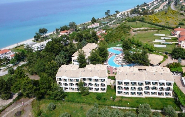 Το ξενοδοχειακό συγκρότημα, -το οποίο, σημειωτέον, βρίσκεται σε πλήρη λειτουργία-, χτίστηκε το 2003, σε έκταση 12 στρεμμάτων, περιτριγυρισμένο από πεύκα και ελιές, μόλις 700 μέτρα από την πολυσύχναστη πλατεία της Χανιώτης και 80 μέτρα από μια όμορφη, βραβευμένη με γαλάζια σημαία παραλία.