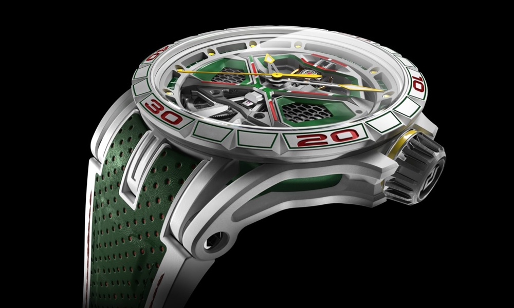 Tο νέο ρολόι 45 χλστ. αντανακλά το DNA της Lamborghini Squadra Corse και τροφοδοτείται από το αυτόματο μηχανισμό RD630. Οπτικά, είναι ξεκάθαρο πως είναι εμπνευσμένο από την Huracan GT3 Evo 2.Είναι πραγματικά εντυπωσιακό πόσα στοιχεία έχει χωρέσει ο σχεδιαστής πάνω στο καντράν του ρολογιού, από αεροδυναμικά βοηθήματα μέχρι και το πλέγμα που διαθέτει η Huracan σε σημεία για την ψύξη του κινητήρα. Ακόμα, τα χρώματα που έχουν χρησιμοποιηθεί είναι το πράσινο, κίτρινο και κόκκινο, αποχρώσεις που συναντάμε στην GT3 Evo 2.