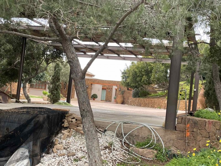 Τα διάφορα επίπεδα του κτήματος είναι κατασκευασμένα από κεραμικά πλακίδια terracotta και πέτρινα σκαλοπάτια με πέτρινα χαμηλού ύψους τοιχία, με τελείωμα σε κάποιες περιπτώσεις από σκυρόδεμα απόχρωσης ώχρας (πεζούλια).