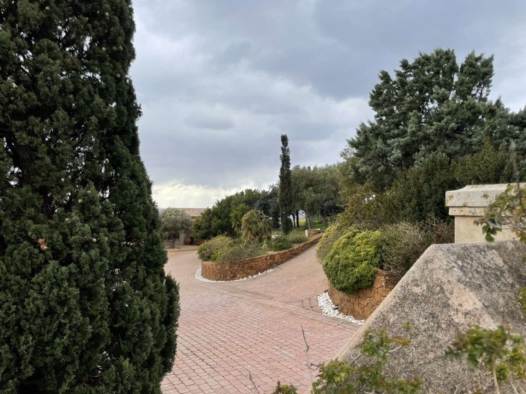 Σύμφωνα με την έκθεση, το ακίνητο διαθέτει ειδικά διαμορφωμένο περιβάλλοντα χώρο, με περίτεχνη περίφραξη από πέτρινο μαντρότοιχο ύψους 1,70 έως 2,00 μέτρα, που καθορίζει τα όρια του ακινήτου προς τις όμορες ιδιοκτησίες και το δρόμο και ιδιαίτερα επιβλητική είσοδο προς τον εσωτερικό χώρο και το δρόμο.