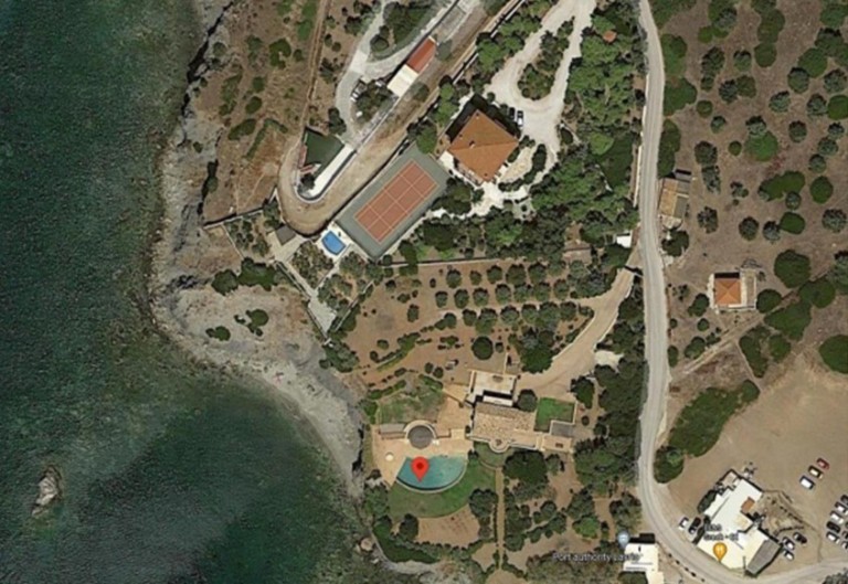 Το οικόπεδο έχει επιφάνεια 7.268 τ.μ. και συνορεύει με ιδιοκτησία της οικογένειας Εμπειρίκου, ενώ διαθέτει πλευρά μήκους 123 μέτρων μπροστά στον αιγιαλό και στη θάλασσα.