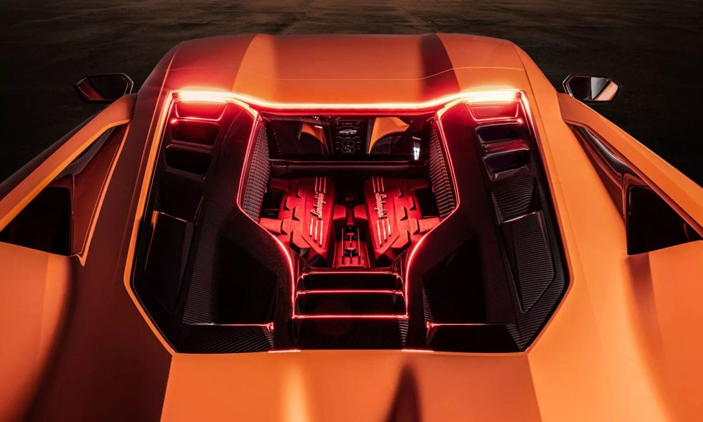 Είχαμε πολλές δεκαετίες να ακούσουμε για μία Lamborghini που δεν έχει το όνομα ενός ταύρου. Και αυτό επειδή η ονομασία της Revuelto βασίζεται στην λέξη Revolution (που σημαίνει επανάσταση) σε μία προσπάθεια να δοθεί έμφαση στο πέρασμα της μάρκας προς τον εξηλεκτρισμό. Μέχρι τώρα την Revuelto την γνωρίζαμε με την κωδική ονομασία LB744 και όπως μπορούμε να δούμε από τις επίσημες φωτογραφίες πρόκειται για μία ακόμη θεσπέσια Lamborghini η οποία διατηρεί το κλασικό σχήμα σφήνας και τις ανοιγόμενες προς τα πάνω πόρτες. Ωστόσο, υιοθετεί κάποια πιο προχωρημένα στοιχεία όπως τους ιδιαίτερους LED προβολείς, τα πίσω φώτα που έχουν ένα αντίστοιχο φωτεινό αποτύπωμα και τις πιο πολλές ακμές του αμαξώματος που μας παραπέμπουν τόσο στην Sián FKP 37 όσο και στην Countach LPI 800-4. Από το πλάι ξεχωρίζουν οι μεγάλες εισαγωγές αέρα, ενώ όλα τα λεφτά είναι η πανοραμική όψη που μπορούμε να διακρίνουμε τον V12 κινητήρα.