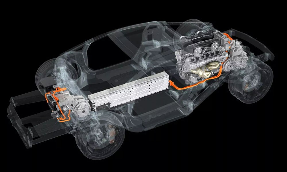 Ο V12 αποδίδει 825 ίππους και 725 Nm, είναι ο ισχυρότερος που έχει βγει από τις εγκαταστάσεις της μάρκας στην Sant’ Agata και κινεί τους πίσω τροχούς. Ο ένας ηλεκτροκινητήρας είναι ενσωματωμένος στο κιβώτιο υγρού συμπλέκτη που ζυγίζει 193 κιλά ενώ οι άλλοι δύο ηλεκτροκινητήρες κινούν τους μπροστινούς τροχούς και διασφαλίζουν τετρακίνηση (αξιοσημείωτο είναι πως διατηρείται ακόμη και στο EV Mode) με χαρακτηριστικά torque vectoring.