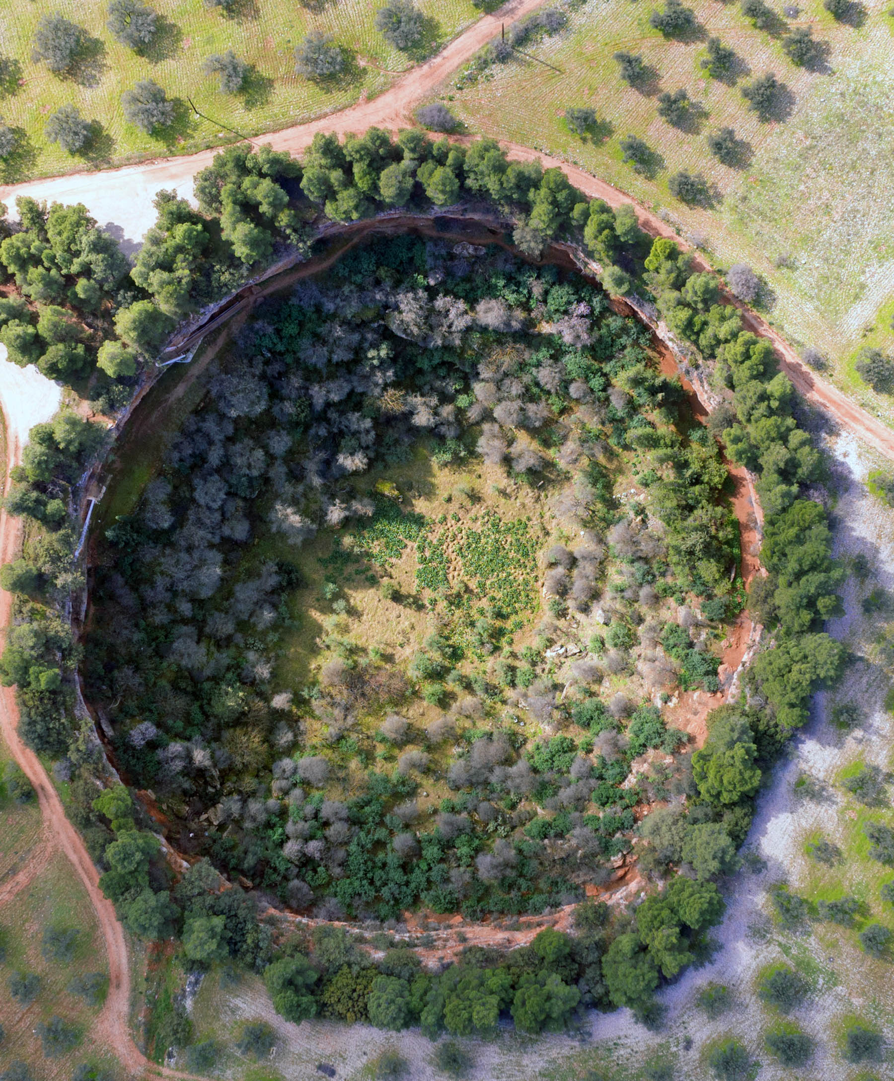 Οι δολίνες Μεγάλη Σπηλιά και Μικρή Σπηλιά των Διδύμων, προήλθαν από λεβητοειδή καθίζηση του εδάφους/Photo: Περικλής Μεράκος