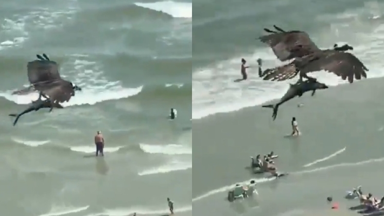 Με ταχεία ακρίβεια και ακλόνητη εστίαση, το πτηνό βούτηξε από τον ουρανό, βυθίζοντας τα νύχια του στο νερό, και βγήκε θριαμβευτικά με το θήραμά του.Σε ένα εντυπωσιακό θέαμα που άφησε έκπληκτους τους θεατές, ένα αξιοσημείωτο και σπάνιο γεγονός εκτυλίχθηκε μπροστά στα μάτια τους. Ένας αετός που πετούσε στον ουρανό με έναν καρχαρία σφιχταγκαλιασμένο στα τρομερά νύχια του.Η απίστευτη σκηνή διαδραματίστηκε την στιγμή, όπου οι λουόμενοι και οι λάτρεις της φύσης έζησαν μια αξέχαστη επίδειξη της ανδρείας των πτηνών. Καθώς το πλήθος παρακολουθούσε με δέος, ένα τεράστιο πτηνό, να αποδεικνύει τις εντυπωσιακές κυνηγετικές του ικανότητες αρπάζοντας έναν καρχαρία από τον ωκεανό.