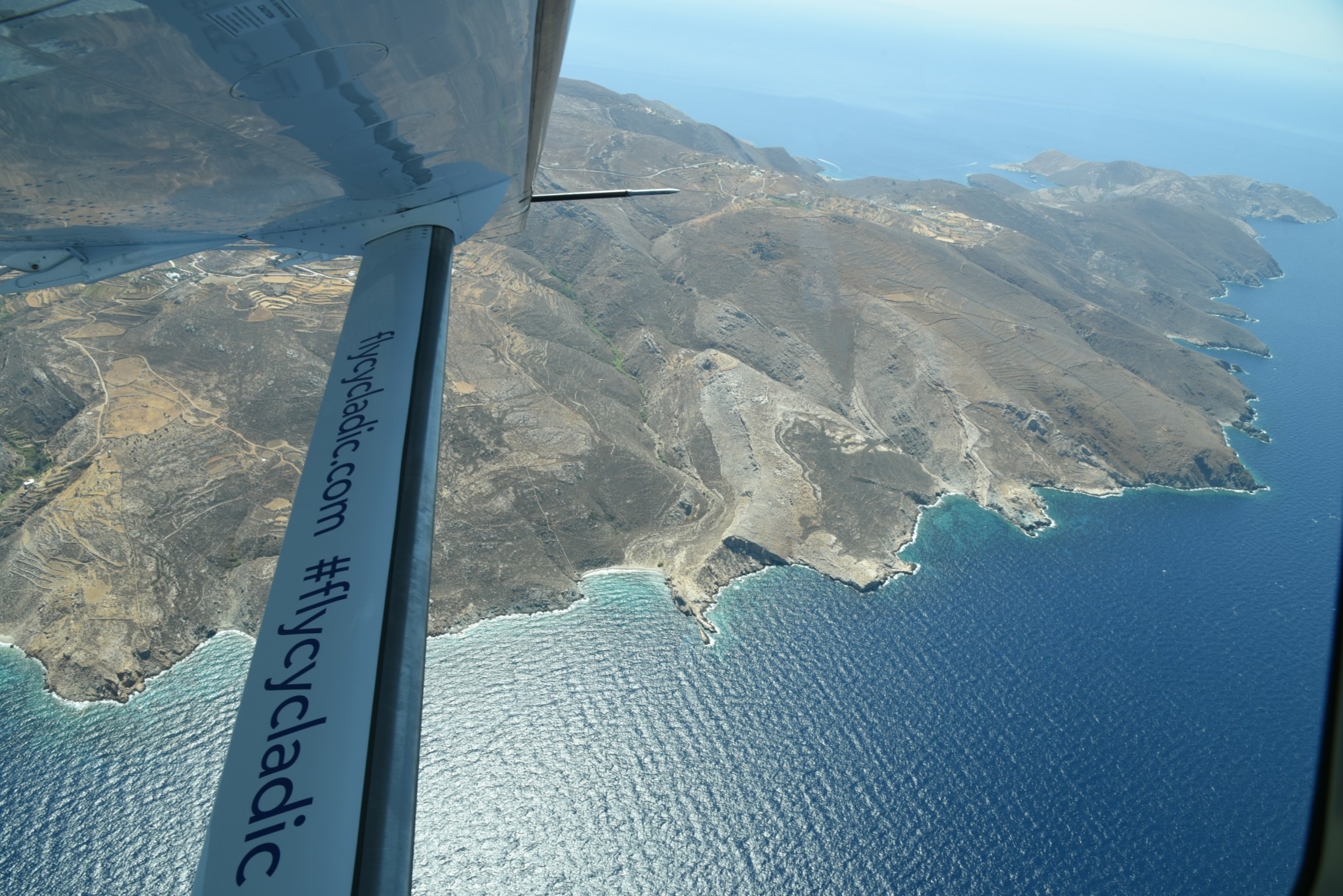 Η θέα από το παράθυρο κερδίζει τις εντυπώσεις. Ένα καλοκαιρινό τοπίο με μπλε αποχρώσεις του Αιγαίου εναλλάσσεται με νησιά. Τα αεροσκάφη της Cycladic πετούν σε χαμηλό υψόμετρο και διαθέτουν μεγάλα παράθυρα, γεγονός που επιτρέπει σε κάθε επιβάτη να απολαμβάνει τη θέα κατά το μέγιστο δυνατό.