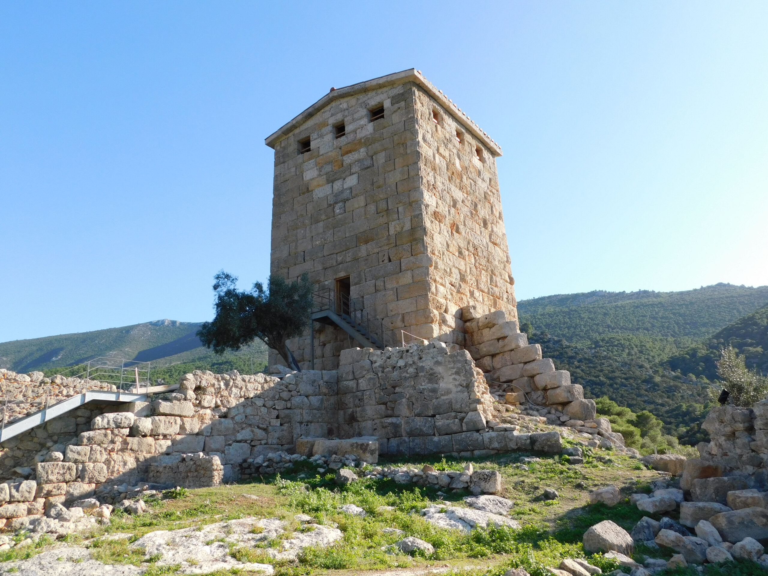 Στην νοτιοανατολική γωνιά της ακρόπολης, βρίσκεται ο ψηλότερος πύργος του φρουρίου, ο οποίος θεωρείται από τα αρτιότερα μνημεία της οχυρωματικής αρχιτεκτονικής της αρχαιότητας. Έχει αναστηλωθεί και είναι επισκέψιμος.
