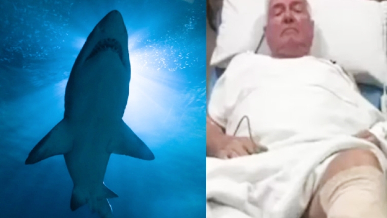 Ακολούθησε μάχη με τον 77χρονο να του ρίχνει ένα δυνατό χτύπημα στο πρόσωπο και ενώ ο καρχαρίας είχε καταφέρει στο μεταξύ να του δαγκώσει το πόδι προκαλώντας του ένα σκίσιμο.