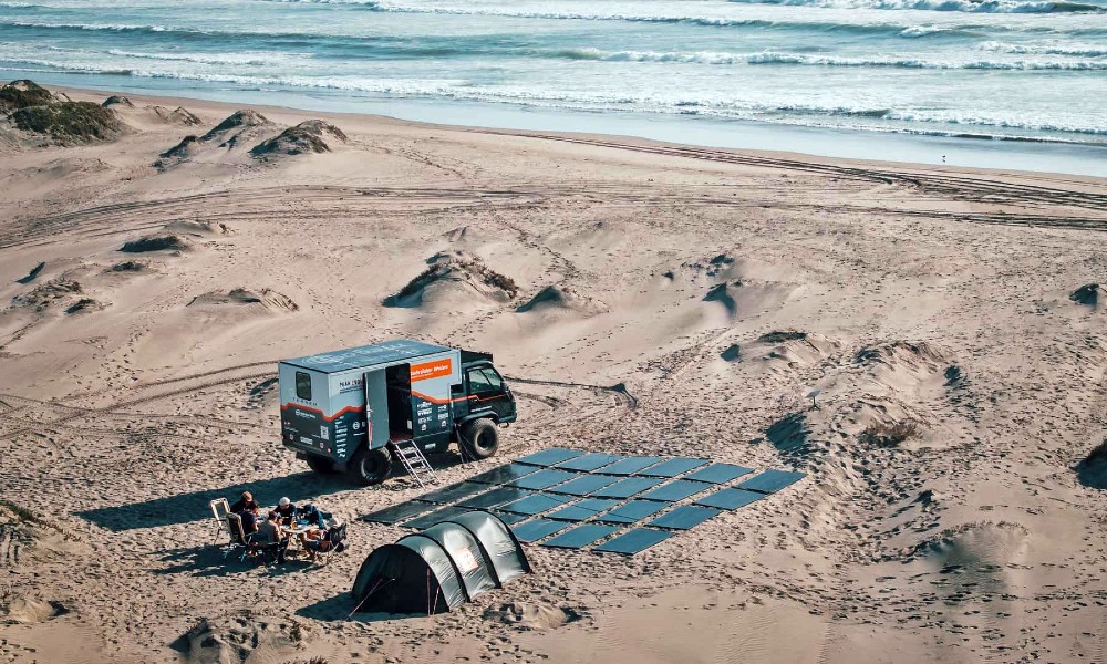 Τα πάνελ έχουν εμβαδόν 8 τετραγωνικά μέτρα και είναι τοποθετημένα στην οροφή του φορτηγού, ενώ ένα σύστημα 28 τετραγωνικών μέτρων είναι έτοιμο να ξεδιπλωθεί σε οποιοδήποτε σημείο σταματήσει το φορτηγό ώστε να φορτιστεί η μπαταρία του.