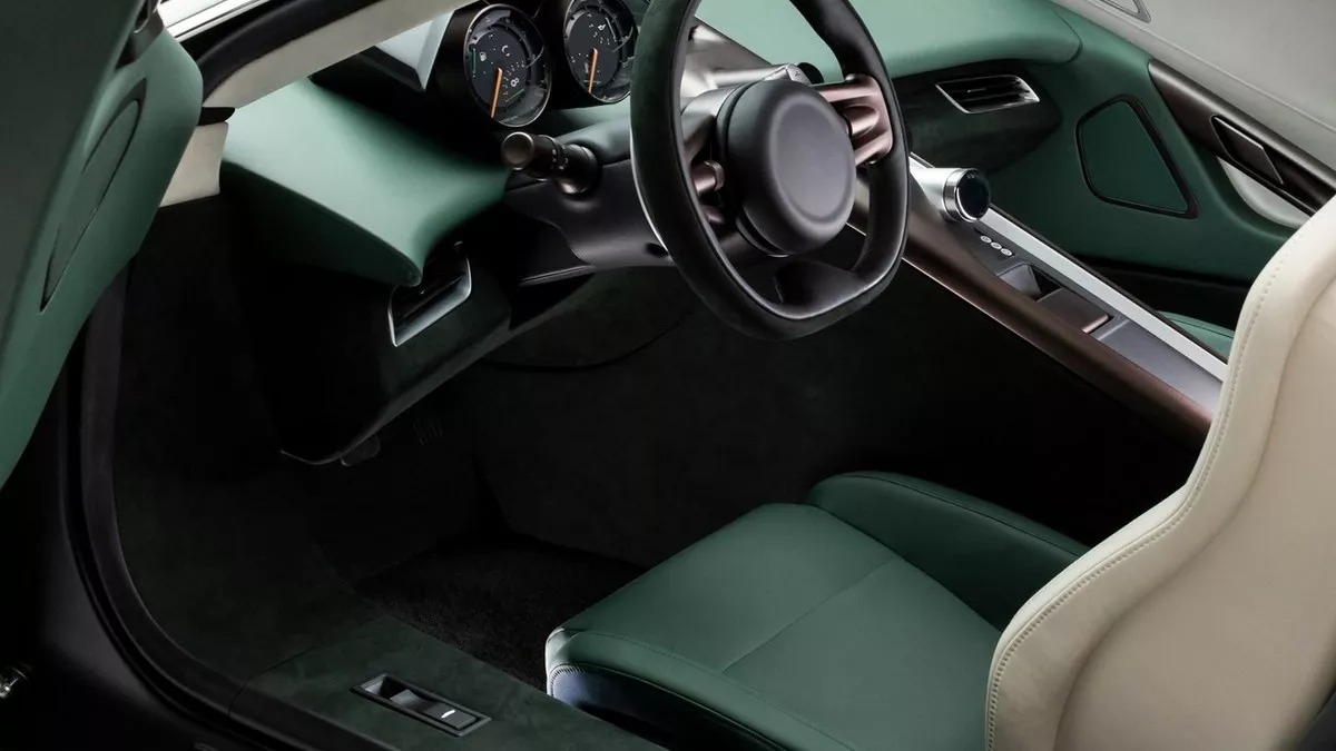 Έτσι, στην κεντρική κονσόλα έχουν τοποθετηθεί κάθετα τρεις μικρές οθόνες αφής (με δυνατότητα σύνδεσης smartphone Apple CarPlay), ενώ κάποιοι από τους βασικούς διακόπτες, όπως αυτός της εκκίνησης του κινητήρα, βρίσκονται στην οροφή. Το τιμόνι είναι αλουμινένιο και τα δερμάτινα καθίσματα προέρχονται από τη φημισμένη σκωτσέζικη εταιρεία Bridge of Weir.
