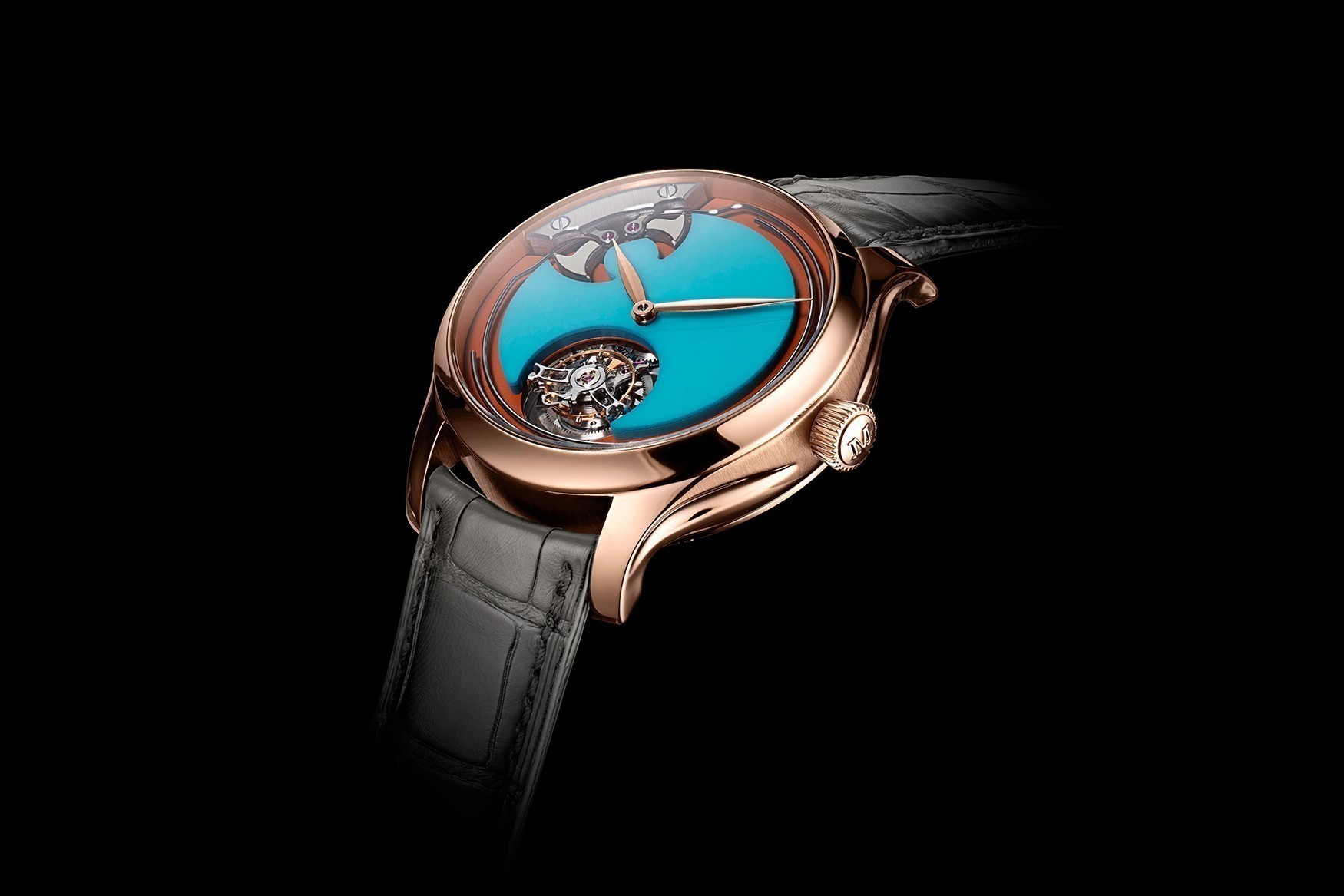 Ταυτόχρονα τολμηρή κι εκλεπτυσμένη, η συλλογή Pop συνδυάζει πολύπλοκους μηχανισμούς υψηλής ωρολογοποιίας με έντονες αντιθέσεις στα χρώματα. Εδώ, ο τυρκουάζ λίθος, γνωστός για τις προστατευτικές του ιδιότητες, ακτινοβολεί με μια λαμπερή διαύγεια που ενισχύεται από τη φλογερή ένταση του πορτοκαλί. Σύμφωνα με τη μινιμαλιστική φιλοσοφία της εταιρείας, το καντράν παραμένει χωρίς ενδείξεις, επιτρέποντας στο flying tourbillon στη θέση 6 και στον ορατό μηχανισμό του minute repeater να τραβά την προσοχή.