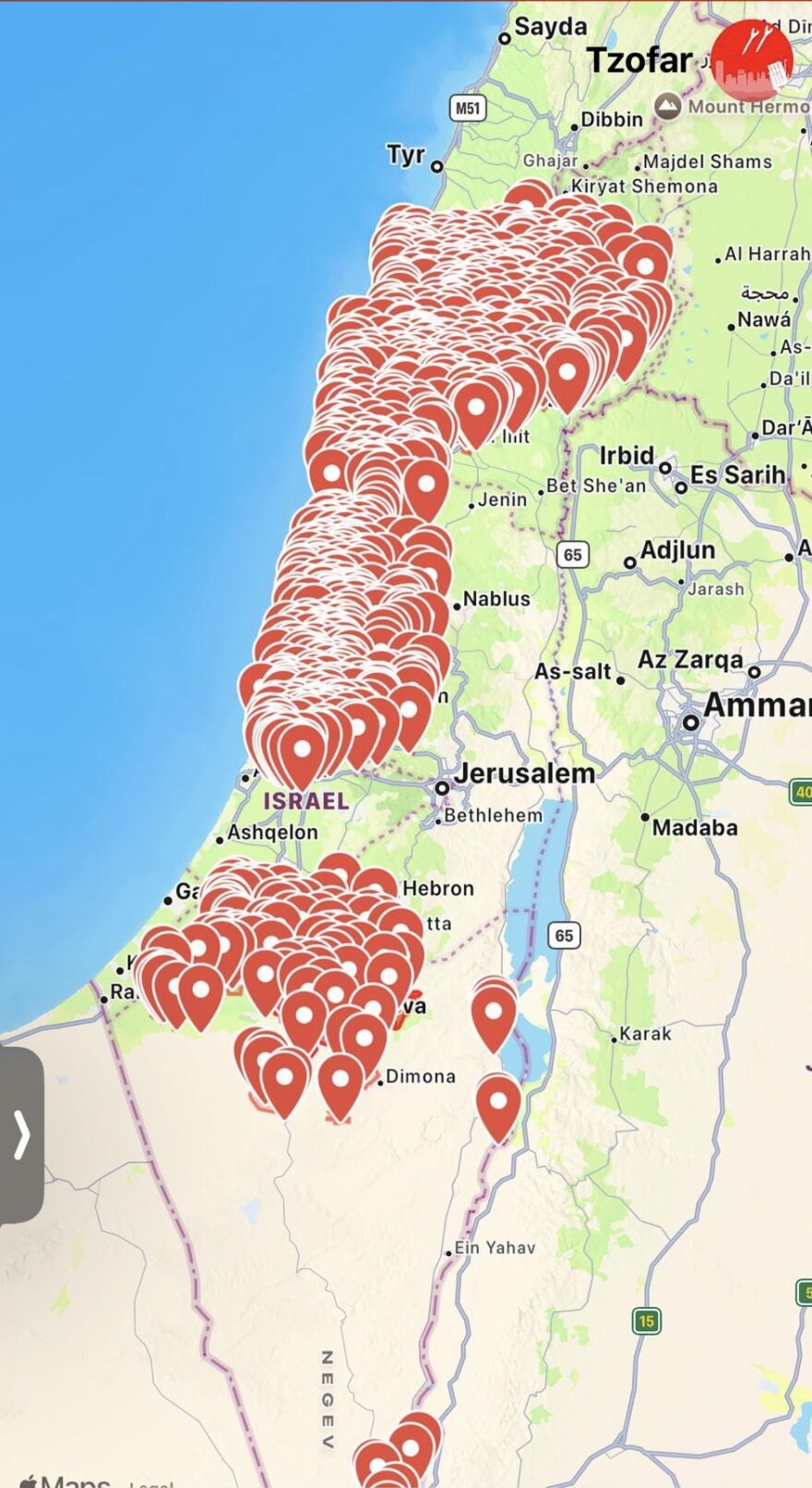 Τρία αναχαιτίστηκαν εν πτήσει πάνω από τη Νεκρά Θάλασσα, διευκρίνισε μέσω Telegram. Ενεργοποιήθηκαν σειρήνες της αεράμυνας μετά τις 03:00 (τοπική ώρα και ώρα Ελλάδας) σε ορισμένους τομείς.