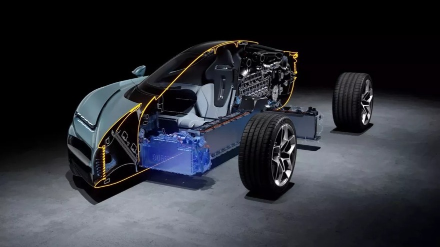 Κάτω από το καπό βρίσκεται ένας καινούργιος V16 ο οποίος αντικατέστησε τον εκπληκτικό W16 που υπήρχε για 20 χρόνια, στη Veyron και στη Chiron. Ο νέος κινητήρας έχει προσαρμοστεί στα δεδομένα της εποχής μας και είναι εξηλεκτρισμένος, ώστε να πληροί όσο το δυνατόν τη νόρμα προστασίας του περιβάλλοντος.Το στοιχείο που εντυπωσιάζει περισσότερο στην υβριδική διάταξη του V16 είναι το γεγονός πως τα μηχανικά μέρη αυτού -κινητήρας, ηλεκτροκινητήρες και κιβώτιο- έχουν συνολικά μικρότερο βάρος από τον τετραπλά υπερτροφοδοτούμενο W16