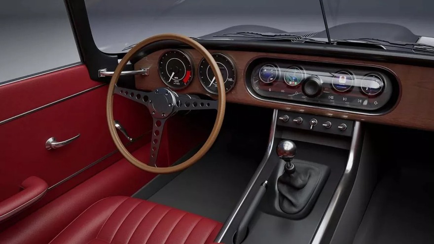 Στο εσωτερικό, η πρόταση είναι εξίσου εκλεπτυσμένη: κόκκινο δέρμα, ξύλινα διακοσμητικά, μίνιμαλ διάταξη και χειροκίνητο κιβώτιο πέντε σχέσεων με μεταλλικό επιλογέα, μια σαφής δήλωση ότι αυτό το αυτοκίνητο δεν προορίζεται για εξηλεκτρισμό, αλλά για αυθεντική, αναλογική οδήγηση. Με επιλογή μεταξύ straight-six ή V12 κινητήρα και δυνατότητα πλήρους εξατομίκευσης, το E-Type restomod concept είναι ένας φόρος τιμής με το βλέμμα στο μέλλον. Το μόνο που λείπει τώρα είναι αυτοί που θα αποφασίσουν να επενδύσουν ώστε το όραμα να γίνει πραγματικότητα.