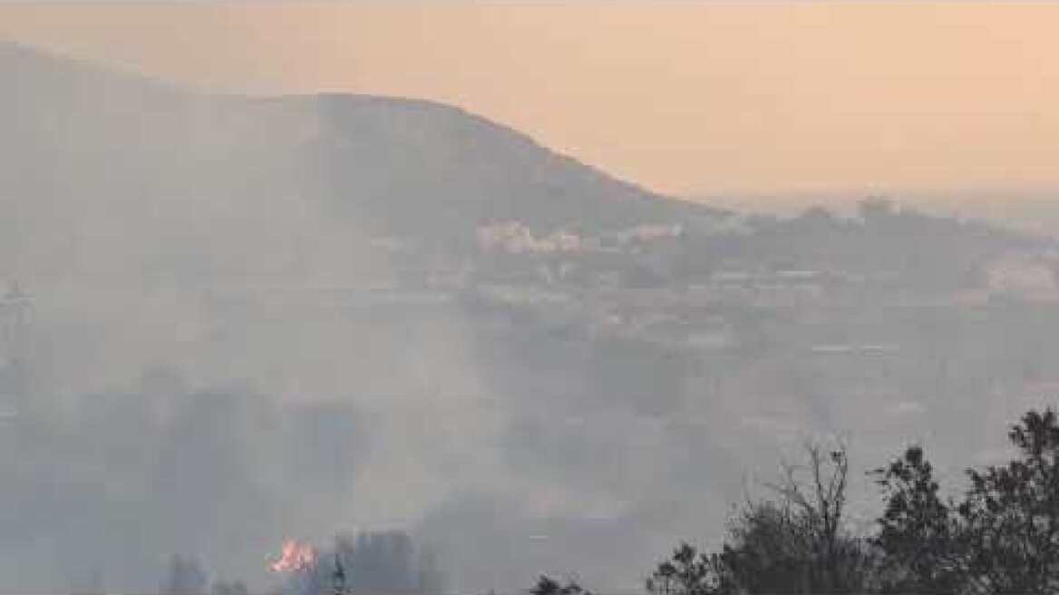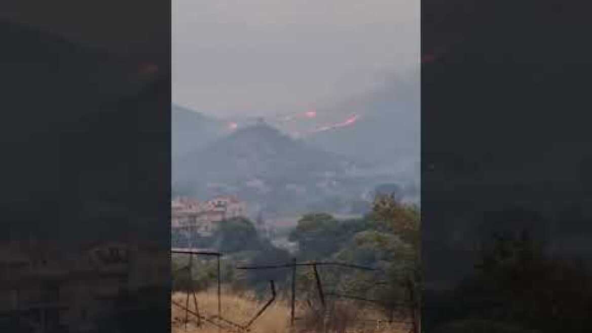 Όπως φαίνεται στο βίντεο, οι καπνοί είναι έντονοι στην περιοχοί, ενώ οι ισχυροί άνεμοι δυσχαιρένουν το έργο της κατάσβεσης.