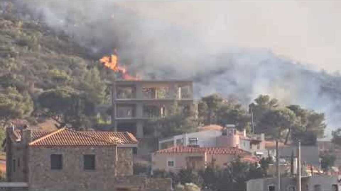 Ανεξέλεγκτη η φωτιά στην Κερατέα - Δείτε βίντεο