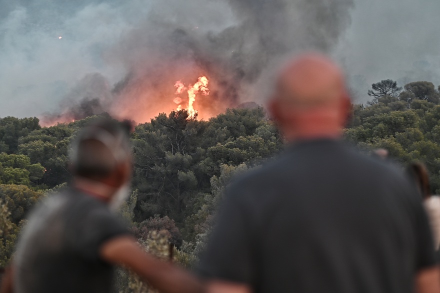 Η φωτιά στην Αττική όπως φαίνεται από τη Βάρκιζα