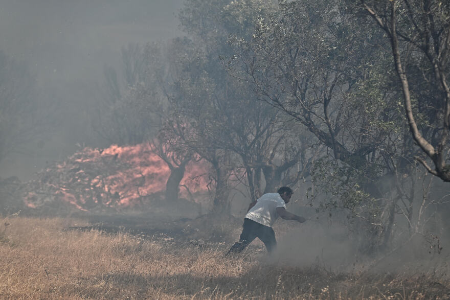 Ενδεικτική είναι η προσπάθεια που κατέγραψε η κάμερα της ΕΡΤ, με εθελοντές με φτυάρια στα χέρια να προσπαθούν να σώσουν σπίτι στο Θυμάρι. Στη συνέχεια πήδηξαν τον φράκτη προκειμένου να σβήσουν τις φλόγες από τον περίβολο, προσπαθώντας ταυτόχρονα να περάσουν τη μάνικα μέσα από τα σίδερα.