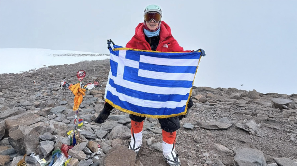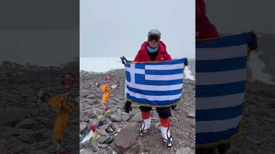 Παρά τις επικίνδυνες καιρικές συνθήκες στο σημείο «ο Ελληνισμός επιβάλλεται για μια στιγμή στο περιβάλλον». Η 47χρονη ορειβάτισσα βαθιά συγκινημένη και περήφανη για το κατόρθωμα της ξεκίνησε το ταξίδι της επιστροφής.