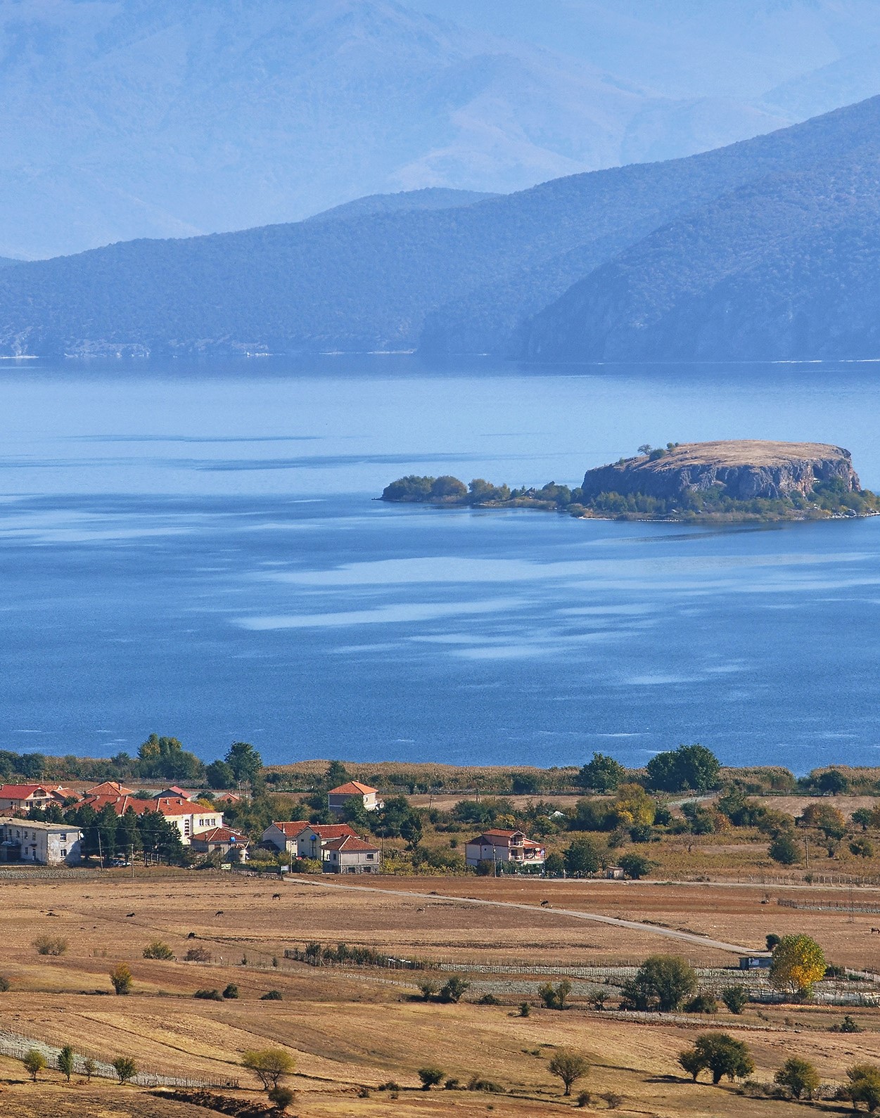 Το Pustec και το νησί Maligrad, στο αλβανικό τμήμα της Μεγάλης Πρέσπας. Photo: Attila Terbócs/Wikipedia Creative Commons
